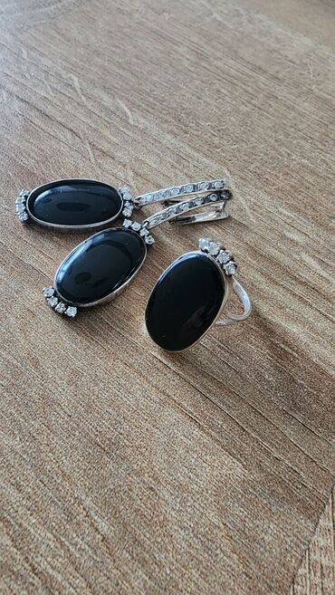 Gümüş rəngli kişilər üçün aksesuar dəsti - Tərkib: manjet düymələri (1 cüt) + açarlıqlı brelok - Material: parlaq xrom rəngli metal korpus - Bəzək: hər hissədə iri kəsimli tünd-yaşıl/qaraya çalan ...