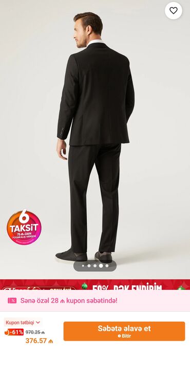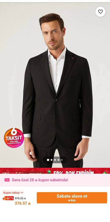 Təzə kişi kostumu 52 razmer 1 dəfə geyilib ölcü böyükdü deyə geyə