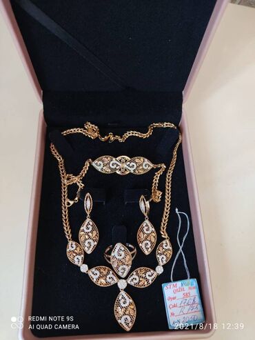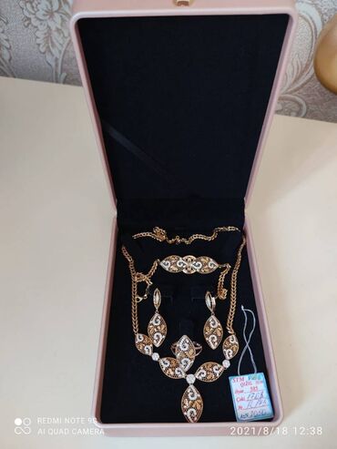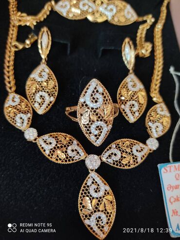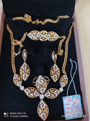 Qızıl muncuq toplu dəst. Dəstə sırğa,qolbaq, üzük daxildir. Üzük - 2.36 gr. Sırğa -3.9 gr Qolbaq - 2.5 gr Qiymət qrama və satışa əsasən tənzimlənir. Əlavə məlumat üçün əlaqə nömrəsi ilə əlaqə saxla...