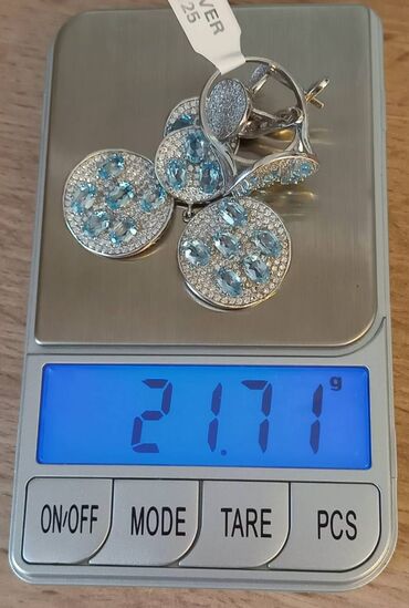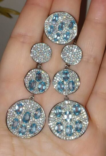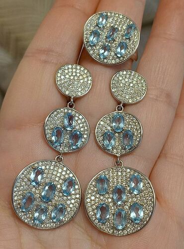 EndirimsizШикарный новый серебряный комплект 925 пр с голубыми топазами, куплен был в Италии, вес комплекта - 21.7 гр, серьги - 5 см, английский замок, кольцо 18-18.5 размер. Отдам всего за 100 ман (куплен намного дороже).