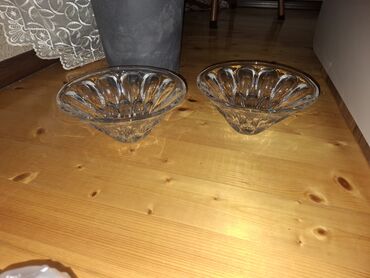 - 2 ədəd klassik şüşə salat/qəlyanaltı qabı – konusvari forma, içdən ləçəkvari relyef, eyni modeldən cüt.