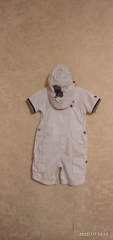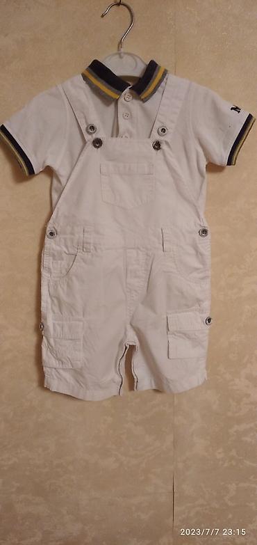 Uşaq üçün iki hissəli dəst - Ölçü: 9M (təxminən 9 aylıq) - Rəng/naxış: Açıq çəhrayı və ağ zolaqlar - Komplekt: Qolsuz kofta + şort - Dizayn: Asimmetrik ön büzgülü (volanlı) kofta, ətək hissəsində ...