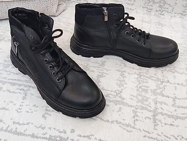 Kişi ayaqqabısı – qara, dəridən (koja) yüksək model. - Razmer: 44 - Boğazayaq (yarımçizmə) tipli, bağlama üçün dəlikli dizayn - Yan hissədə fermuar – geyinib-soymaq rahatdır - Qalın rezin altlıq, g...