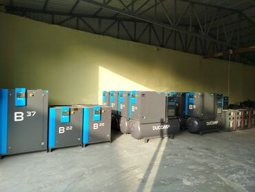 Şəkillərdə görünən modellər: B5, B11, B15, B22, B37 vida kompressorları; DUCOMP üfüqi resevrlər; soyuducu tipli quruducular; bir neçə porşenli kompressor seti.