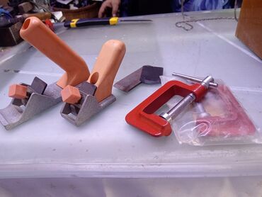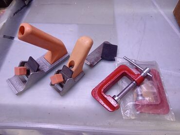 - 1 ədəd C-tip sıxac (qırmızı): möhkəm metal gövdə, mövhumlu vint mexanizmi ilə iş parçasını dəzgaha və ya bir-birinə bərkitmək üçün.