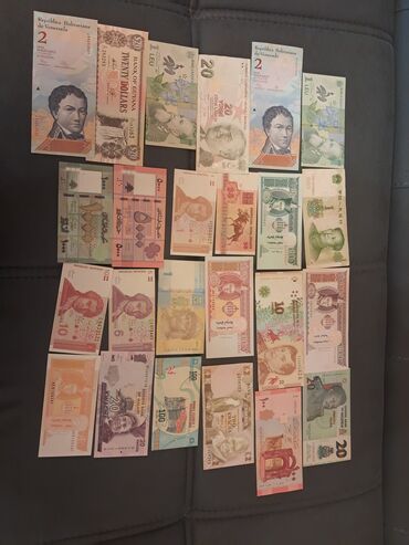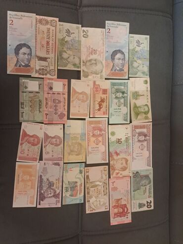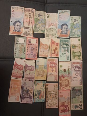 - Bir neçə qitədən banknotlar: Venesuela (2 bolívar), Qayana (50 dollar), Rumıniya (1 leu), Belarus (20 rubl), Çin (1 yuan), Nepal, İordaniya, Mərakeş, Tunis, Əlcəzair, Zambiya (2 kwacha), Namibiya (10 dollar), Tanzaniya (20 shilingi), Nikaraqua, Ukrayna (1 hrivnya) və s.