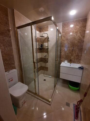 Satılır: Şüşə duş kabini - Model: 4 panelli sürgülü sistem - Material: Mat (qumlu) temperli şüşə, qara alüminium/profil çərçivə - Açılma: Orta hissədən iki sürgülü qapı, rahat tutacaqlar - Hündürl...