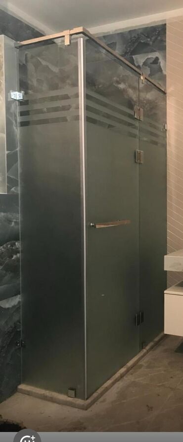 Satılır: Şüşə duş kabini - Model: 4 panelli sürgülü sistem - Material: Mat (qumlu) temperli şüşə, qara alüminium/profil çərçivə - Açılma: Orta hissədən iki sürgülü qapı, rahat tutacaqlar - Hündürl...