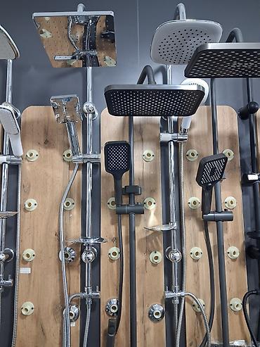- Əl duşu: ergonomik tutacaq, çoxsaylı nozzle-lar, şlanqla birlikdə. Bəzi modellərdə bir neçə rejim keçidi.
