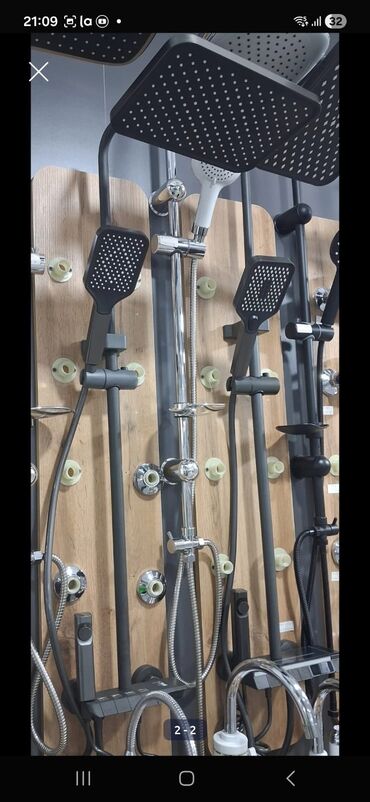 - Əl duşu: kvadrat formalı, çoxsaylı nozzlular, tənzimlənən hündürlükdə sürgülü relsdə