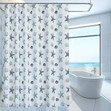 - Komplekt: 1 ədəd duş pərdəsi + 12 ədəd asma qarmaq