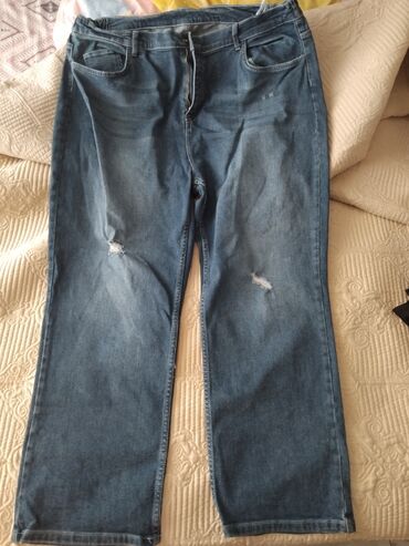 Heç geyilmemiş Göy rəngdə, düz biçimli cins şalvar. Həm rahat, həm də dəbli görünüş təmin edir. Gündəlik istifadə üçün idealdır.