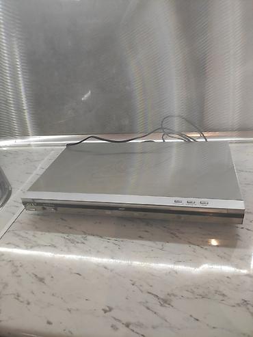 LG DVD pleyer - Model: LG (ön paneldə LG loqosu var) - Disk formatları: DVD video, CD; ön paneldə “DVD” göstəricisi və disk yuvası - Ön paneldə idarəetmə düymələri: Power, Play/Pause, Stop, Skip v...