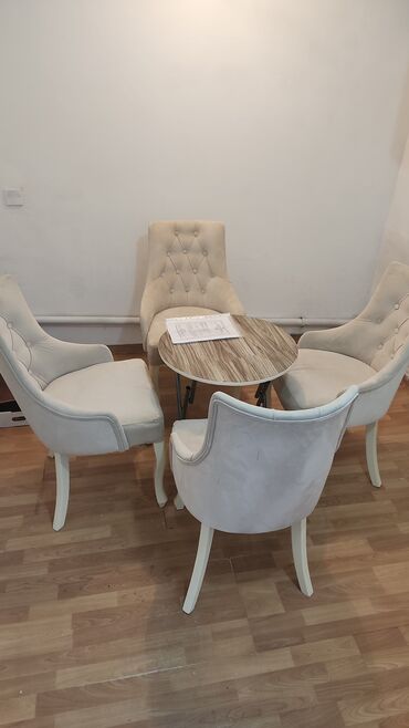 Dəyirmi stol və 4 ədəd yumşaq kreslo dəsti