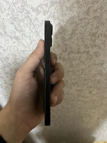Qeyd: Şəkillərdə cihazın ön, arxa və yan görünüşləri göstərilib. Ekranda “Dynamic Island” sahəsi, arxada iki obyektivli kamera bloku və qara korpus aydın görünür.