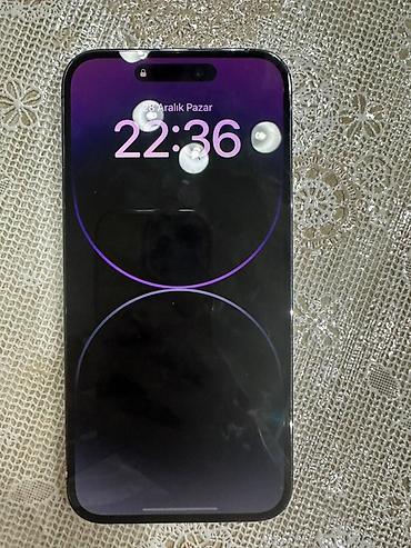 14 pro max 256 87 pil zavod🔋 Telefon qeti usdada olmuyub. Mehsula yazili zemanet verilir. Adaptr basdigi,antudar ve Case bizden hediyye🎁Magazamiz 28 may kucesi 56,(Semed Vurgun parkile uzbeuz) Real...