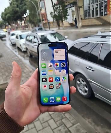 Apple iPhone – qara rəng - Ekran: Dynamic Island kəsiyi ilə tam ekran, yüksək parlaqlıq və hamar toxunuş hissi. - Şəbəkə: LTE göstərilir, eSIM/şəbəkə dəstəyi mövcuddur. - Arxa kamera sistemi: ikiq...