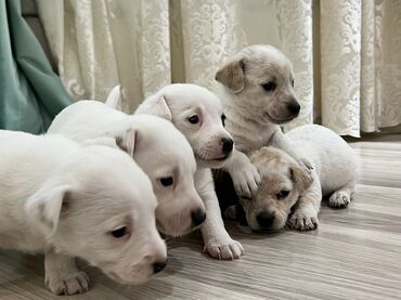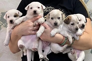 Jack Russell Terrier balaları - Cins: Jack Russell Terrier (qısa tüklü) - Rəng: ağ fon üzərində qəhvəyi və qara ləkələr, klassik maskalı baş quruluşu - Say: bir neçə bala - Xarakter: enerjili, ağı...