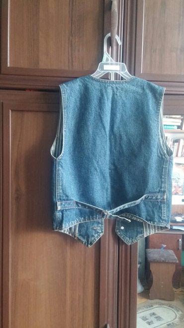 Джинсовая жилетка на мальчика,10~12лет,не на полного,стандарт, покупали в Европе,длина 47 см,обхват 74,размер 29,цена 8манат