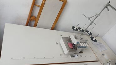 3) Coverstitch/ketay (ikiqat iynə-çift örtük tikişi) tipli maşın – iplik stendi və masa ilə, toxuma kənarlarının örtülməsi və elastik məmulatların tikişi üçün.
