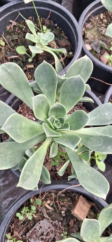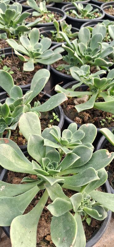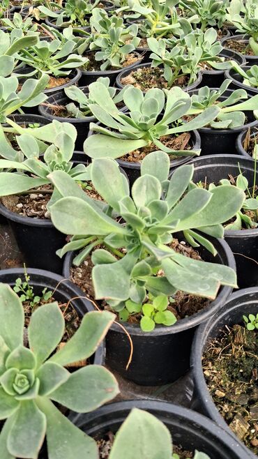 Sukulent (Echeveria tipli) – qara plastik dibçəklərdə