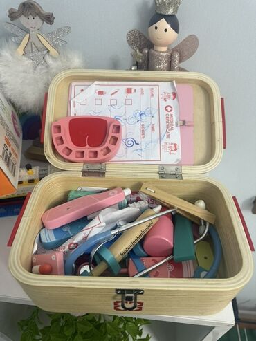 - Diş həkimi mövzulu geniş oyun dəsti, möhkəm taxta çamadanın içində.