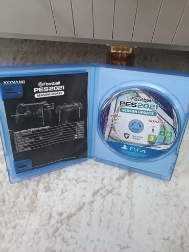 - Qutu üzərində: PES 2021 Season Update loqosu, PS4 markalanması, yaş reytinqləri və orijinallıq nişanları görünür