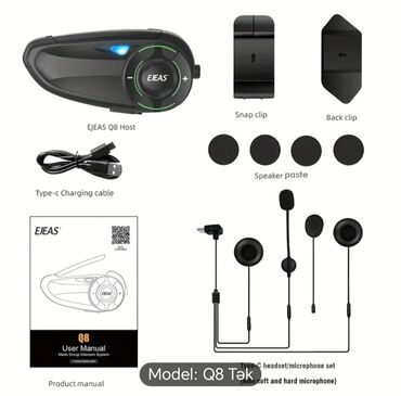 EJEAS Q8 Tak – motosikletçilər üçün dəbilqə interkomu və velosiped üçün arxa görüntü güzgüləri dəsti