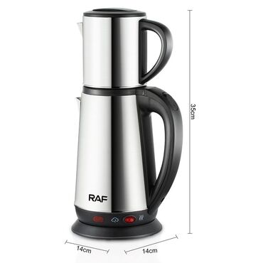 Eklektik Çaydan RAF Paslanmayan poladdan hazırlanmış elektrik çaydan və dəm çaydanı dəstidir ✅Güc: 1500-1800 VT ✅Su tutumu Böyük çaydan 1.8 litr, ✅ Dəm çaydanının həcmi isə 0.8 litrdir. ✅avtomati...