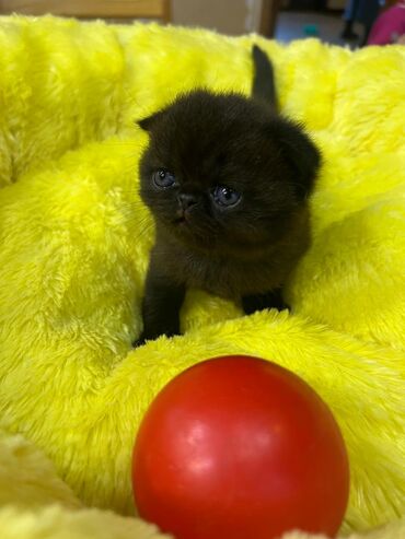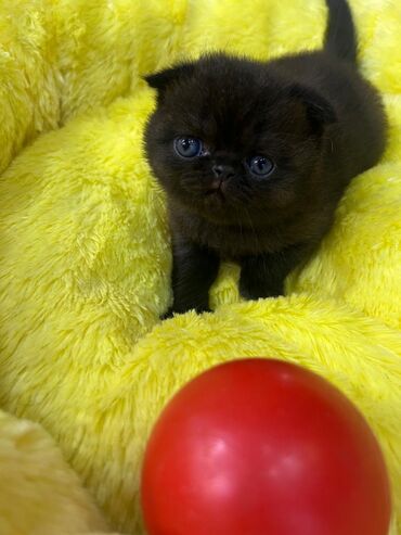 - Cins: Eksotik Şorthair tipli görünüş (yastı üz, qısa burun, böyük dairəvi gözlər)