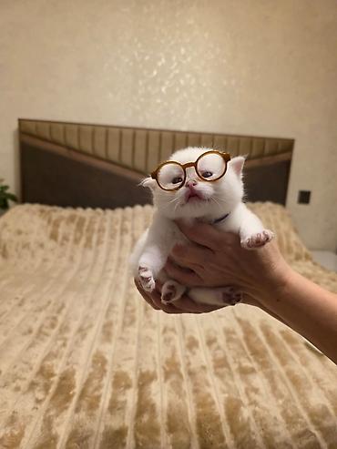 Ağ rəngli Scottish Fold balası - Cins: Scottish Fold (qatlanmış qulaqlar) - Rəng: tam ağ, yumşaq və sıx tüklü - Gözlər: iri və ifadəli - Xasiyyət: sakit, mehriban və ev şəraitinə tez uyğunlaşan; q...