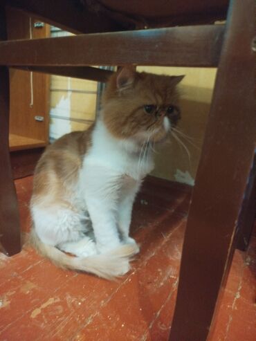 Cins: Ekzotik Şorthair (yastı burunlu, qısa tüklü tip) Rəng: Qırmızı-krem və ağ bicolor Yaş: Balalıq dövrü Cinsi: göstərilməyib Xüsusiyyətlər: - Sakit, mehriban və ev şəraitinə uyğun xasiyyət - Yum...