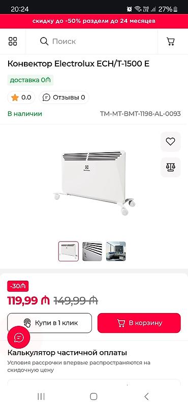 Qızdırıcı konvektor, Electrolux, Kredit yoxdur