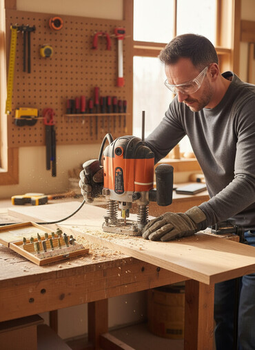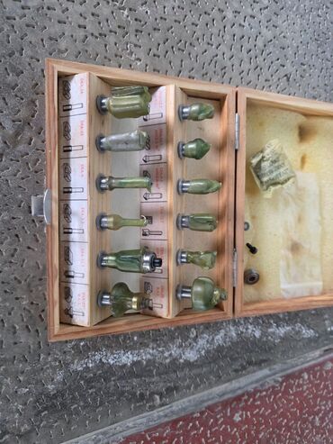 - Taxta qutuda müxtəlif profilli freze ucluqları (şablon üzərində işarələnmiş): kənar yuvarlaqlaşdırma, künc kəsmə, faza, V-kəsik, oyuq/groove və dekorativ profillər daxil olmaqla bir neçə ölçü.
