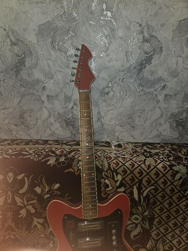 - Korpus: yarımboş (f-şəkilli səs deşikləri ilə), qırmızı rəng, qara pickguard