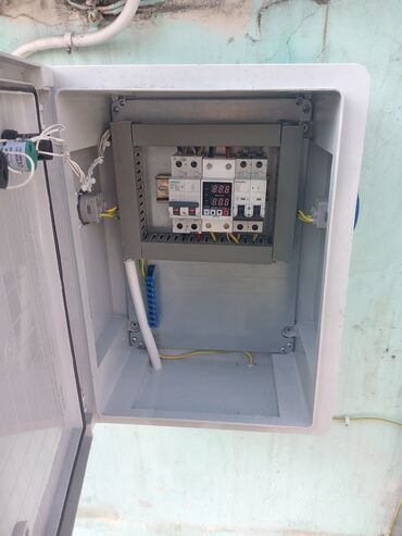 - Daxildə DIN rels üzərində yığma: Siemens avtomat qoruyucular, şit rele/avtomat, sızma cərəyanından qoruma (RCD) və gərginlik nəzarət modulu