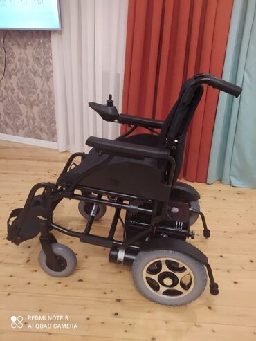 Elektrik təkərli kreslo - Yüngül alüminium konstruksiya, qatlanan çərçivə - Sağ tərəfdə joystick idarəetməsi (sürət tənzimləmə, start/stop) - Yumşaq, geniş oturacaq və bel dayağı; yan qollar yastı...