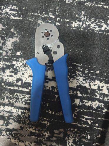 - Ferrul/naqil ucluqları üçün sıxma presi (qlipser). Dairəvi başlıqda çoxpilləli qəlib sistemi var, hex (altıbucaqlı) sıxma forması ilə təmiz və etibarlı kontakt yaradır. Mavi rezin tutacaqlar rahat tutuş təmin edir, rəçetka (ratchet) mexanizmi bərabər və nəzarətli sıxma imkanı verir.