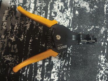 - Ingco markalı avtomatik kabel soyucu (model üzərində “Ingco 1906395” qeyd olunub). Tək hərəkətlə kabelin izolyasiyasını kəsib çıxarır, tənzimlənən sıxma mexanizmi və yaylı quruluşu sayəsində sürətli və dəqiq işləyir. Sürüşməyən, ergonomik narıncı tutacaqlar uzunmüddətli istifadə üçün rahatlıq verir.