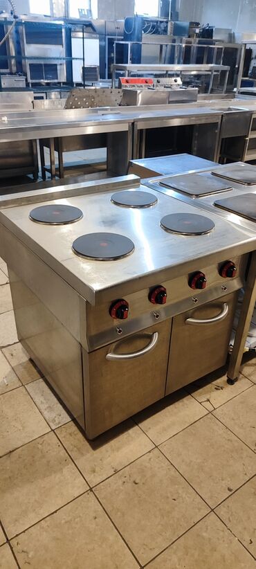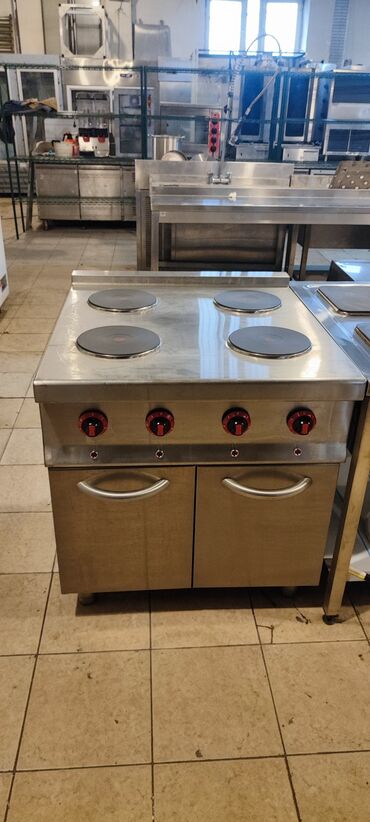 4 gözlü elektrik sobası. ölçüsü 80x90x85sm. altında şkafi var. 380 voltla işləyir