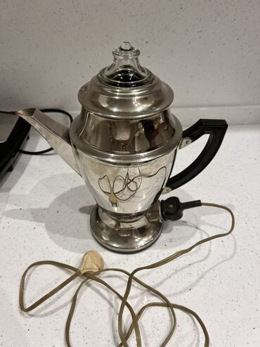 Elektrik qəhvə dəmləyən, 220V, işlənməyən, dəstdə 4 fincan, 1 qaşıq, 1 çaydan var, sovet malı. Новая, неиспользованная электрическая кофеварка, работает от 220 вольт. В комплект входят: чайник, 4 ...