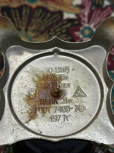 Sovet istehsalı elektrik samovarı - Model: ES-3/1–220 (qutu üzərində GOST 7400–75 qeyd olunur; siyahıda “armudvari/konik/oval” formalı variantlar göstərilib) - Gərginlik: 220 V - Korpus: xrom/nike...