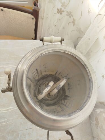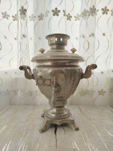 Elektrik samovarı, çay hazırlamaq üçün klassik üslubda. Gümüş rəngdədir, təxmini 3litr tutur Elektrik Samovar yeni ,1983 il sovet dövrünnən qalma Ünvan Əhmədli Çatdırılma Metro Sos 2azn