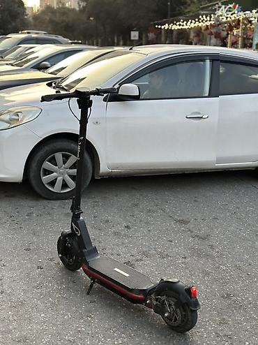 Elektrik skuter - Qara rəngli şəhər tipli elektrik skuter - Geniş sürüş səthi: sürüşməyə qarşı relyefli platforma - Rulda rəqəmsal ekran: sürət/güc göstəricisi görünür Gedis Mesafesi 95 km Suret 4...