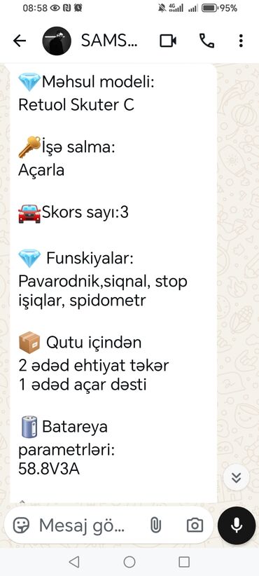 - Batareya: 58.8V 3A (şarj qurğusu daxildir)