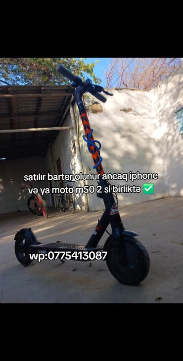 Razılaşma yoludu var ferqi yoxdu yazın satılır barter olunur ancaq iphone və ya moto m50 2 si birliktə ✅️ Elektrik skuter + velosiped paketi