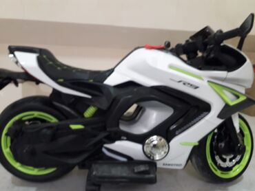 Elektrik motosiklet – sport üslubunda, ağ-yaşıl rəng sxemi ilə