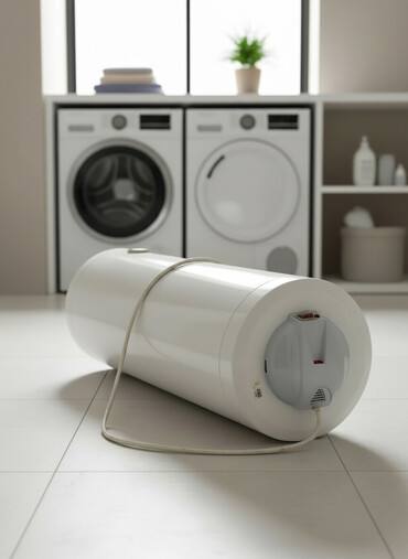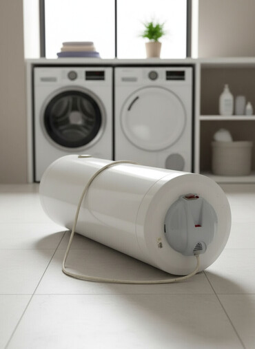 - Üstündə termostat paneli, indikator lampası, su giriş-çıxış ucları və elektrik şnuru.