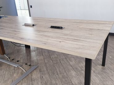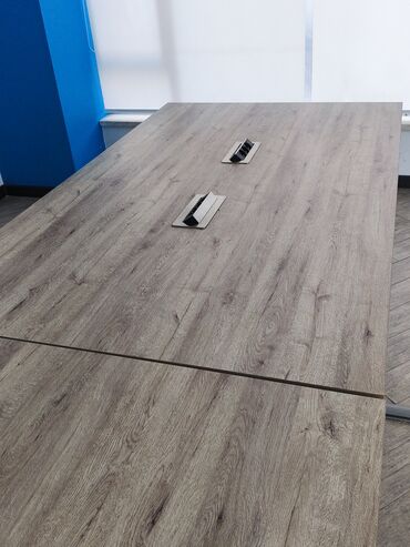 Konfrans/İclas masası – müasir dizayn qiymətdə razılaşmaq olar - Forma: düzbucaqlı, geniş səthli - Rəng: boz və qrafit kombinasiyası, ortada açıq zolaq - Material: laminat/MDFlam səth, möhkəm meta...