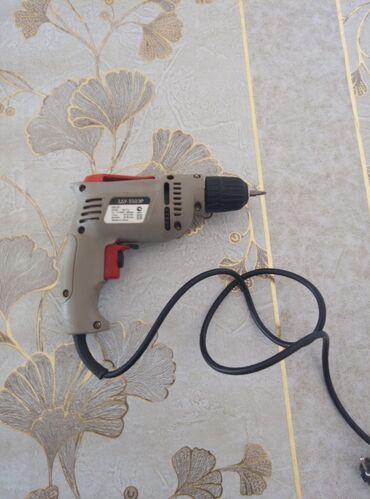 Şəbəkə ilə işləyən elektrikli qazma (şnurla). - Korpus: mavi rəngli, kompakt, tək sürətli tetik düyməsi - Güc mənbəyi: 220V şəbəkə, uzun elektrik kabeli ilə - Patron: açarlı metal patron, 1–13 mm...